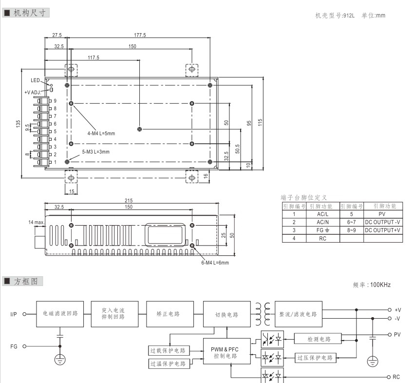 | 输入电压 | 88-264VAC | 温度范围 | -40˚cto+85˚c |