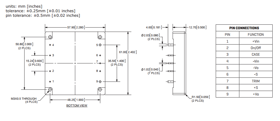 封装尺寸 57.9x61.0x12.7mm 认证 RoHS,CE