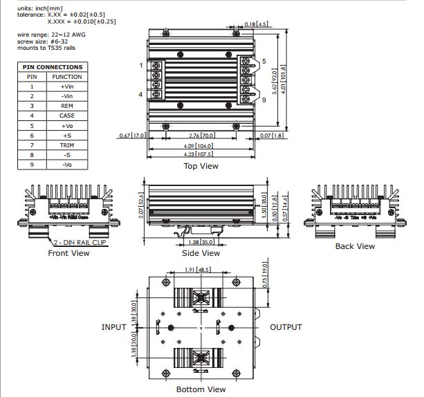 输入电压 9-36VDC 温度范围 -40˚cto+85˚c