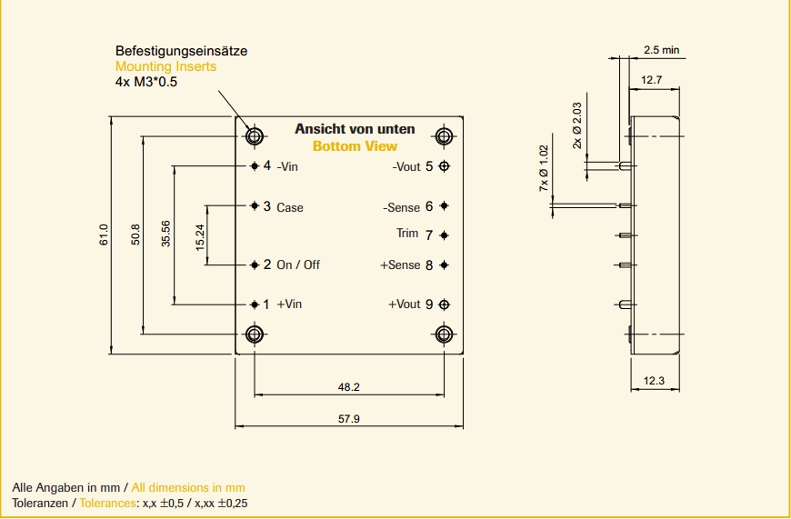 封装尺寸 57.9x61x12.7mm 认证 RoHS,CE