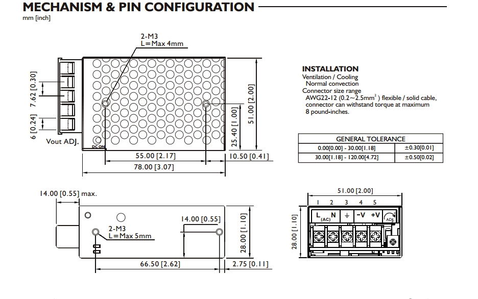 | 输入电压 | 88-264VAC | 温度范围 | -40˚cto+85˚c |