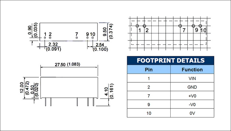 | 输出功率 | 2W | 短路保护 | 1second(-suffix"P" continous) |