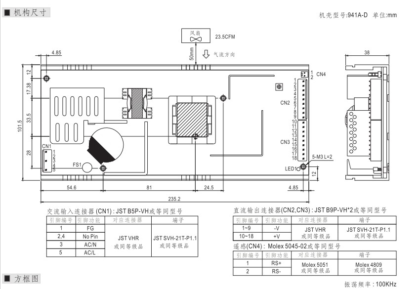 封装尺寸 235.2x101.5x38mm 认证 RoHS,CE