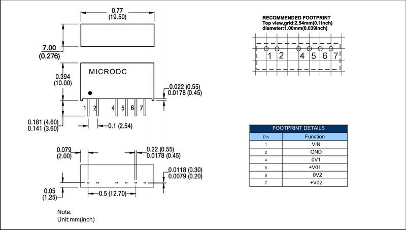 | 输出功率 | 2W | 短路保护 | 1second(-suffix"P" continous) |