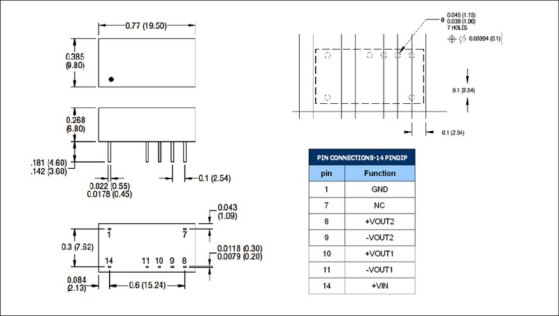 | 输出功率 | 1W | 短路保护 | 1second(-suffix"P" continous) |