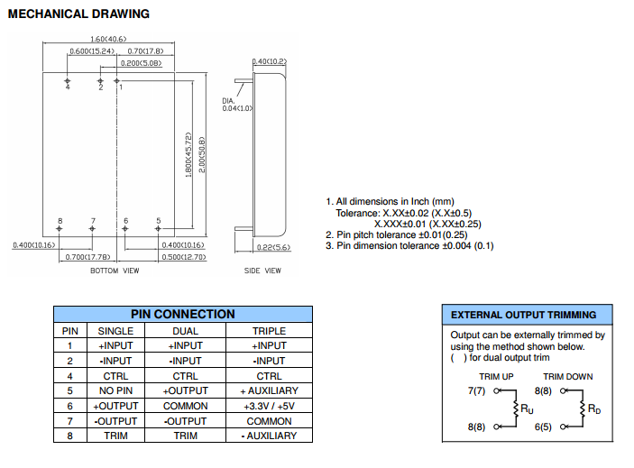 | 输出电压 | 3.3/±15VDC | 效率 | 82 % |