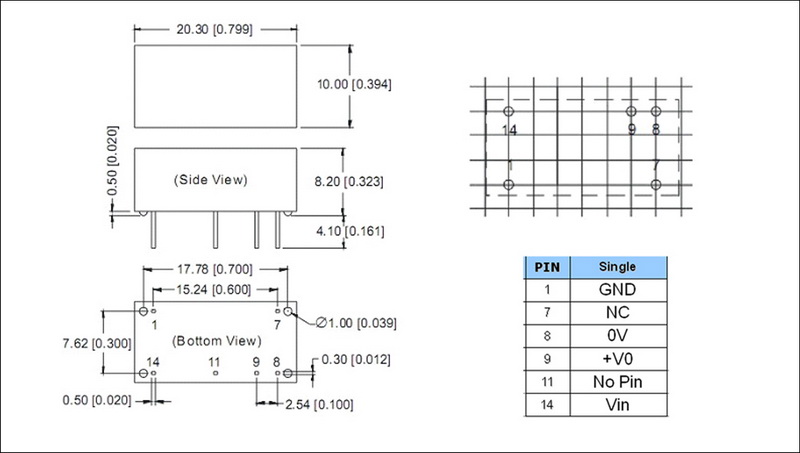 | 输出功率 | 2W | 短路保护 | 1second(-suffix"P" continous) |
