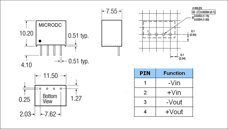 | 输出功率 | 2W | 短路保护 | 1second(-suffix"P" continous) |