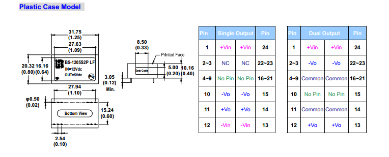 | 型号 | B5-1209S3LF | 稳压输出 | REGULATED(1-3%) |