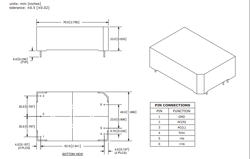 | 封装尺寸 | 70.0x48.0x23.5mm | 认证 | RoHS,CE |