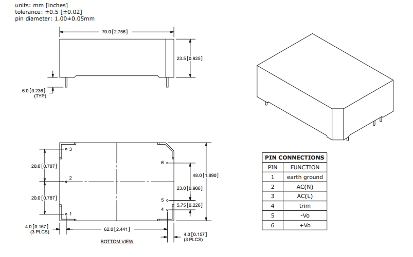 | 封装尺寸 | 70.0x48.0x23.5mm | 认证 | RoHS,CE |
