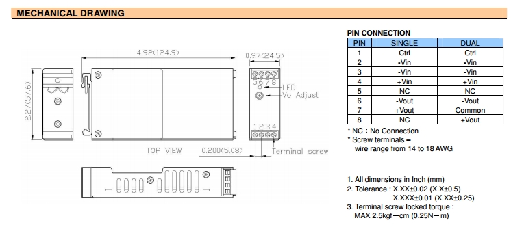 | 封装尺寸 | 125.0x57.6x24.5mm | 认证 | RoHS,CE |