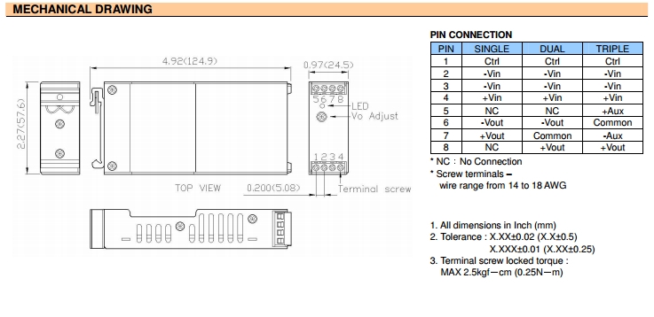 | 封装尺寸 | 125.0x57.6x24.5mm | 认证 | RoHS,CE |