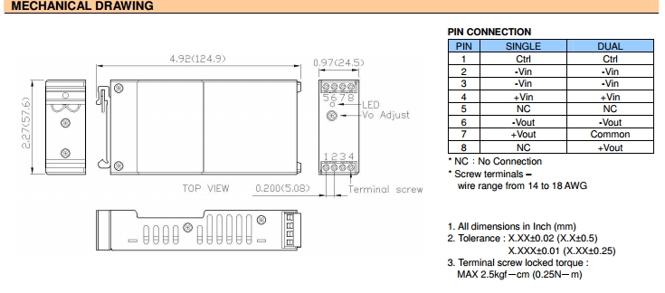 | 封装尺寸 | 125.0x57.6x24.5mm | 认证 | RoHS,CE |