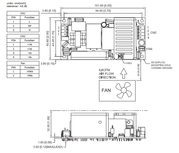 封装尺寸 101.6x50.8x33.6 mm 认证 RoHS,CE