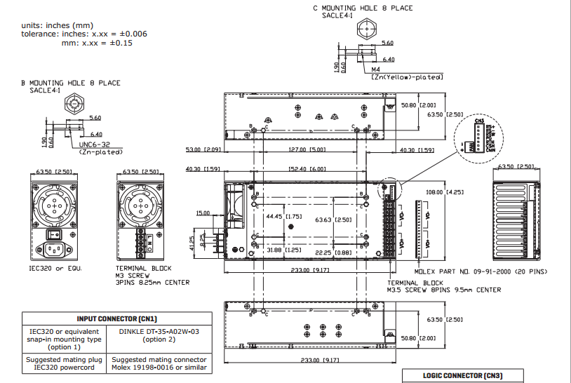 封装尺寸 232.92x107.95x63.5mm 认证 RoHS,CE