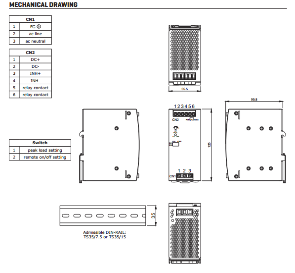 封装尺寸 55.5x125x99.8 mm 认证 RoHS,CE