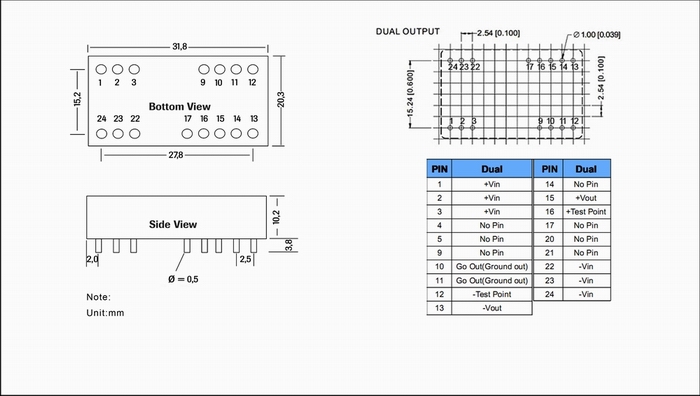 | 输出功率 | 1.5W | 短路保护 | 1second(-suffix"P" continous) |