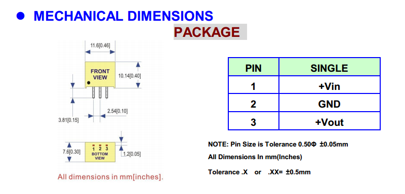 | 输出功率 | 0.5A | 短路保护 | CONTINUOUS |