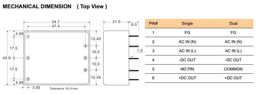 | 封装尺寸 | 55.0x45.0x20.5mm | 认证 | RoHS,CE |