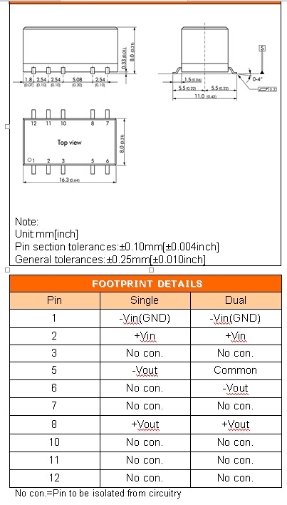 | 输出功率 | 0.25W | 短路保护 | 1second(-suffix"P" continous) |