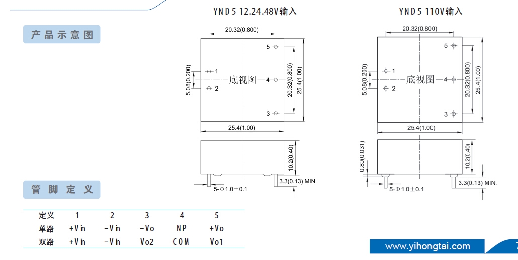 | 所属系列 | YND5 | 产品类别 | 直流到直流电源(DC/DC) |