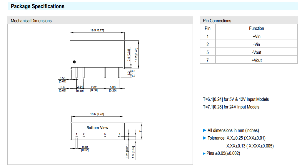 | 封装尺寸 | 19.5x7.1x10.2mm | 认证 | RoHS,CE |