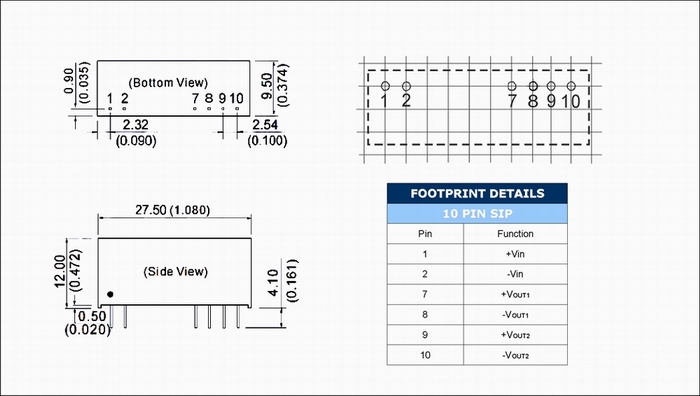 | 输出功率 | 1W | 短路保护 | 1second(-suffix"P" continous) |