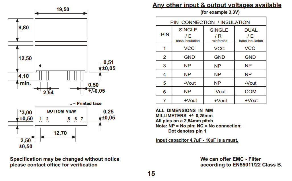 | 输入电压 | 15VDC | 温度范围 | -40˚cto+85˚c |