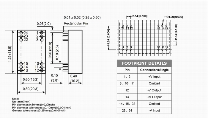 | 输出功率 | 2W | 短路保护 | continous |