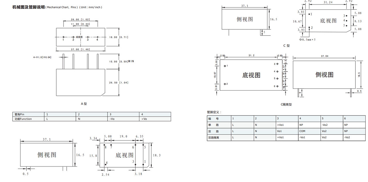 | 输入电压 | 165-265VAC | 温度范围 | -40˚cto 85˚c |