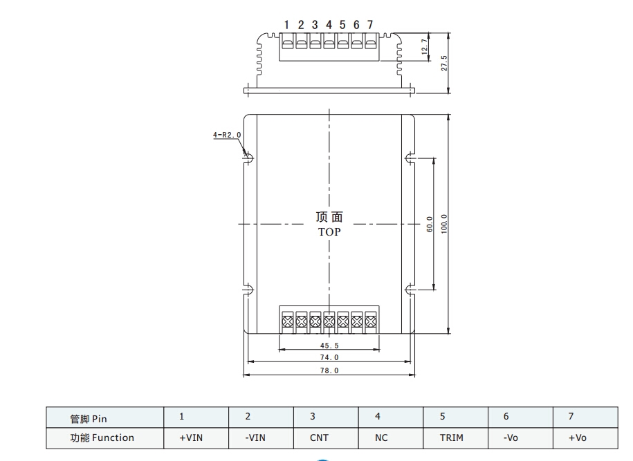 | 输入电压 | 36-75VDC | 温度范围 | -40˚cto+85˚c |