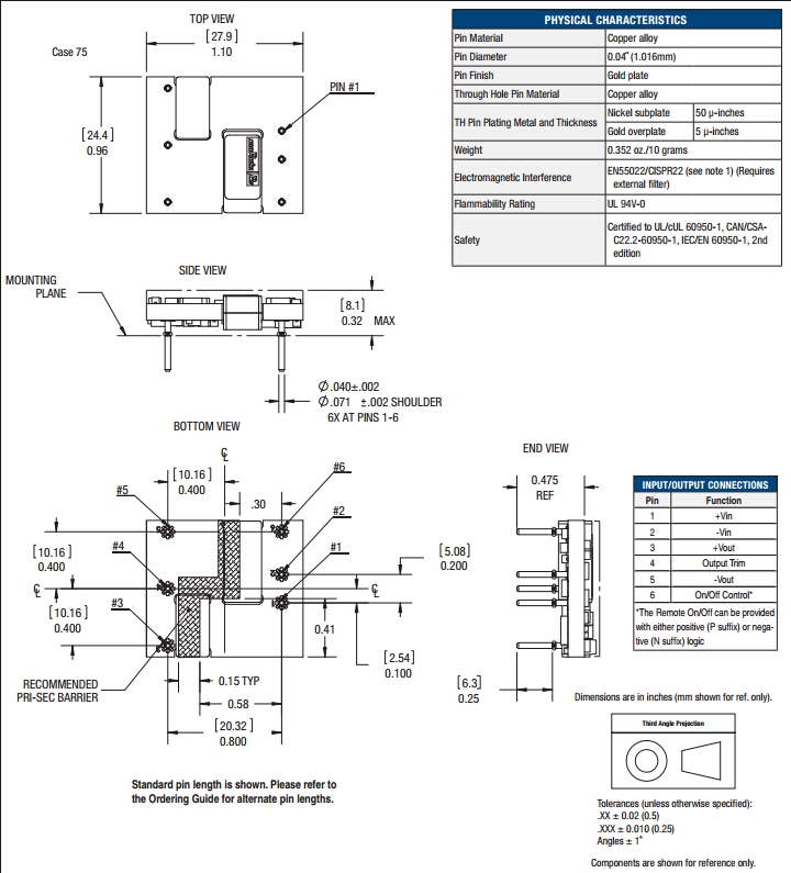 | 隔离电压 | 2250 VDC | 外壳材料 | |